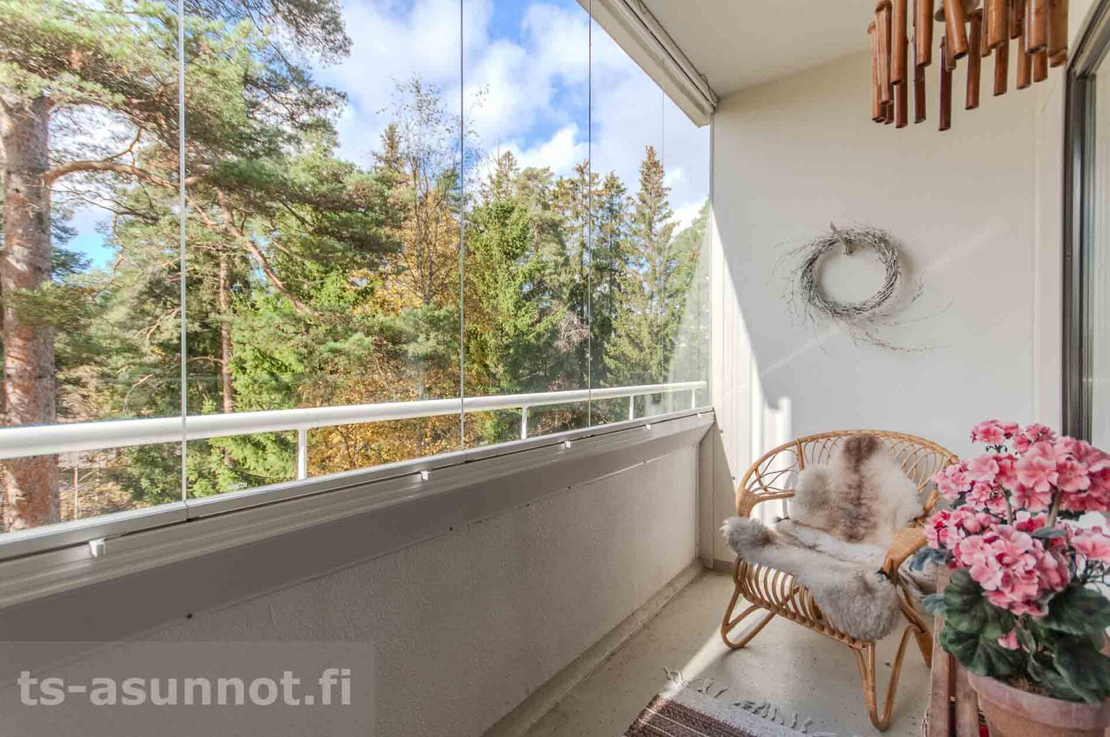 | Näkymät huoneistosta | Parvekkeelta rauhallinen, metsäinen näkymä. |