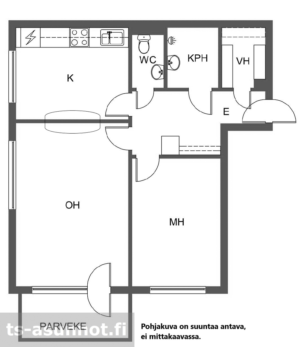 | Huoneistoselitelmä | 2 h, k, kph, wc, vh, las. parv |